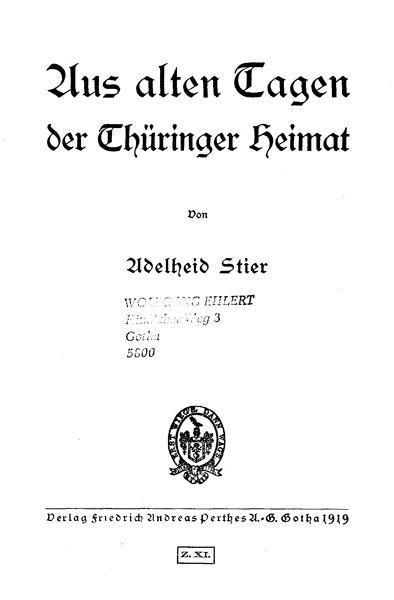 Aus Alten Tagen Der Thueringer Heimat