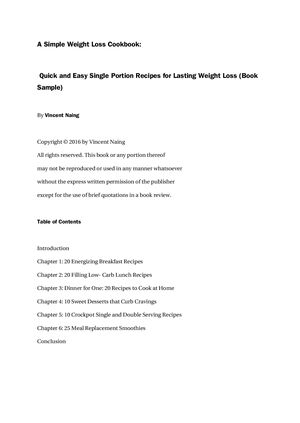 A Simple Weight Loss Cookbook Quick And Easy Single Portion
