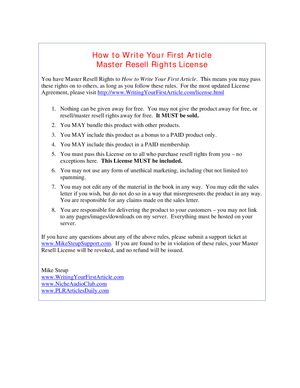 Writing Your First Article Master Resell Rights License