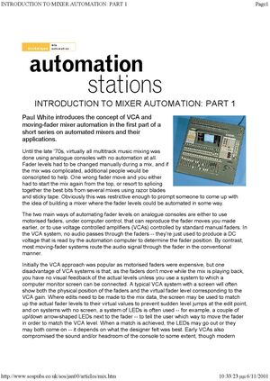 Ebook Sound Engineering Tutorials From Sound On Sound Technique Introduction To Mixer Automation 1