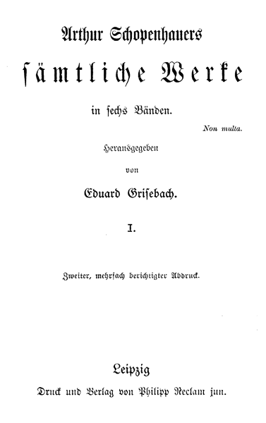 Die Welt Als Wille Und Vorstellung. Band I