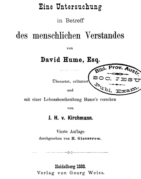 Eine Untersuchung In Betreff Des Menschlichen Verstandes
